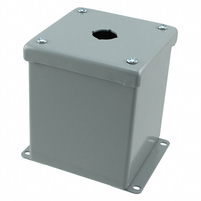 Ngā āhuatanga Pushbutton Holes - 1 Whakaahuatanga Taipitopito Box with Mounting Flange Metal, Steel Gray Cover Included 4.016" L x 4.016" W (102.00mm x 102.00mm) X 4.764" (121.00mm)